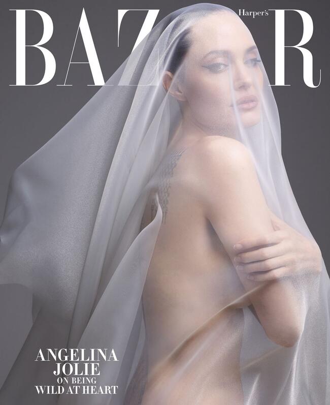 ظهرت أنجلينا جولي، ذات الـ44 عام وأم لـستة أطفال، في جلسة تصوير حصرية لصالح مجلة " Harper's Bazaar" وتألَّقت بإطلالات مثيرة من بينها إطلالة عارية يغطيها شرشف شيفون يظهر معالم جسدها.