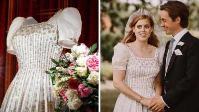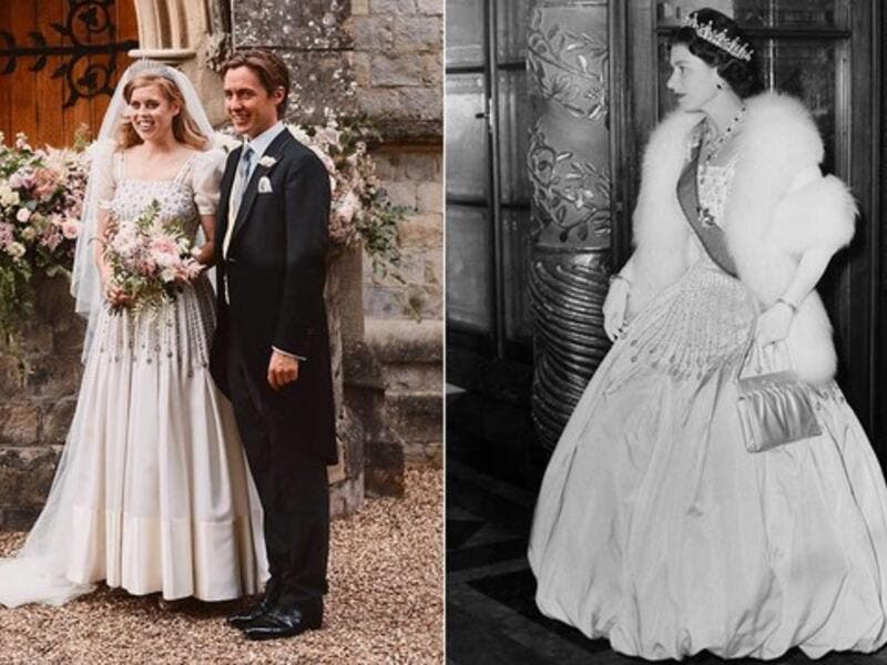 خطفت الأميرة "بياتريس" الأنظار بأناقتها وجمالها في حفل زفافها السري البسيط على "إدوارد مابيلي موتسي" ، حيث تألقت مُرتديًة فستان زفاف يعود للملكة "إليزابيث" الذي أشرف على تصميمه "نورمان هارتنيل".