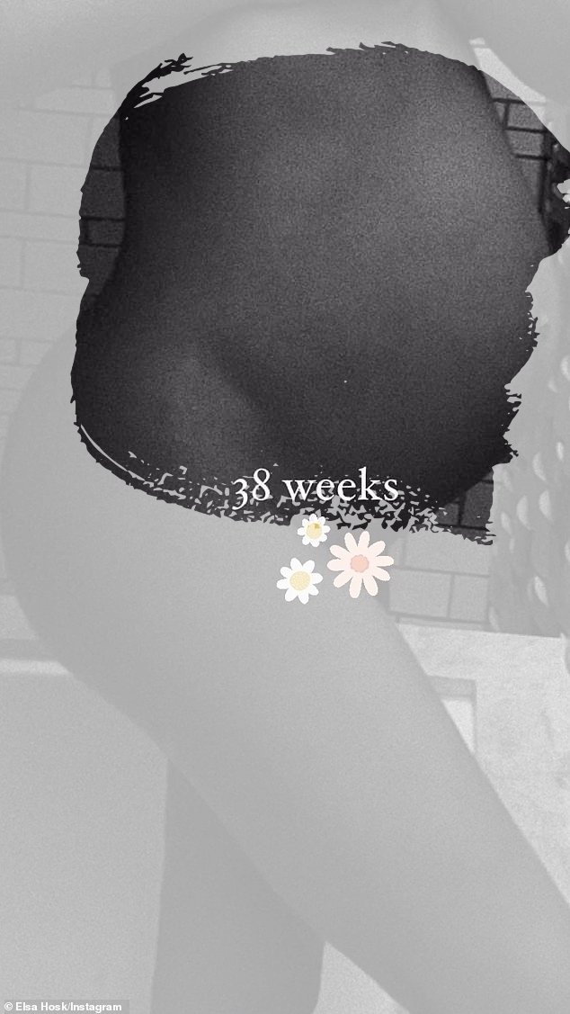 واحتفلت السا ببلوغها 38 أسبوعاً من حملها فظهرت عارية تماما في لقطة فنية من الابيض والأسود،  ونشرتها عبر حسابها الخاص على "انستغرام" اليوم الاثنين.