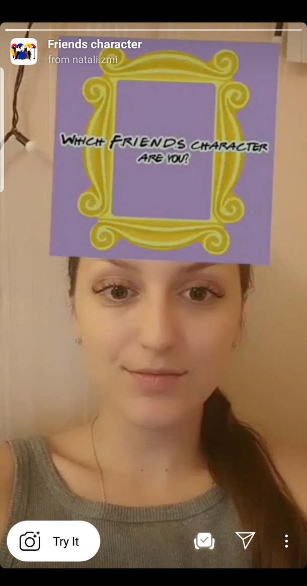 ومن ضمن هذه المجموعات فلتر مسلسل 'Friends' وهو الأفضل حتى الآن فإذا كنت ترغب في معرفة ماهي شخصية المسلسل الأقرب إلى شخصيتك من ضمن شخصيات: "راتشيل غرين، فيبي بوفيه، تشاندلر بينغ، مونيكا جيلر، روس جيلر أو جوي تريباني، إليك كيفية الحصول على فلتر Friends على انستغرام: