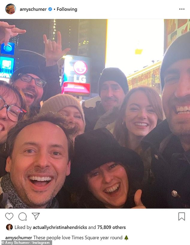 ونشرت النجمة البالغة من العمر 31 عاماً صورةً لها مع الأصدقاء وعلّقت عليها: "هؤلاء الناس يحبون التايمز على مدار السنة" حيث بالكاد تم مشاهدة إيما ستون بسبب قيام صديقاتها بتغطية وجهها وهن في الصف الأمامي.