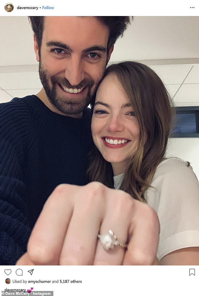 ويأتي ظهور إيما هذا بعد أن أعلن خطيبها ديف مكاري عن خطوبته لإيما ستون عبر وسائل التواصل الاجتماعي لأن النجمة لا تملك حساباً خاصاً بها.