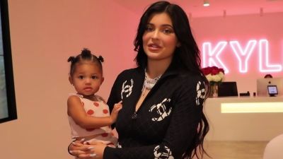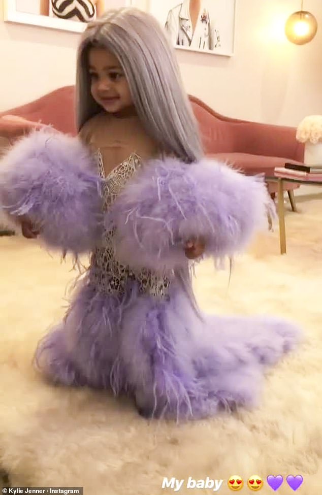 وقامت كايلي بالتعليق على لقطات الصور التي بدت وكأنها أُخذت في غرفة ستورمي المصممة في مكاتب شركة كايلي  Kylie Cosmetics، فقالت: "مع طفلتي!! لا أستطيع التعامل مع هذا!!" ووضعت بعض رموز القلب بجانب التعليق.