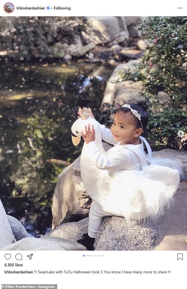 وعلّقت كلوي على الصورة قائلةً: "بجعة بحيرة مع توتو إطلالة هالويين 1"، وأضافت على العبارة: "أنتم تعرفون لديّ الكثير من الأشياء التي سأشاركها".