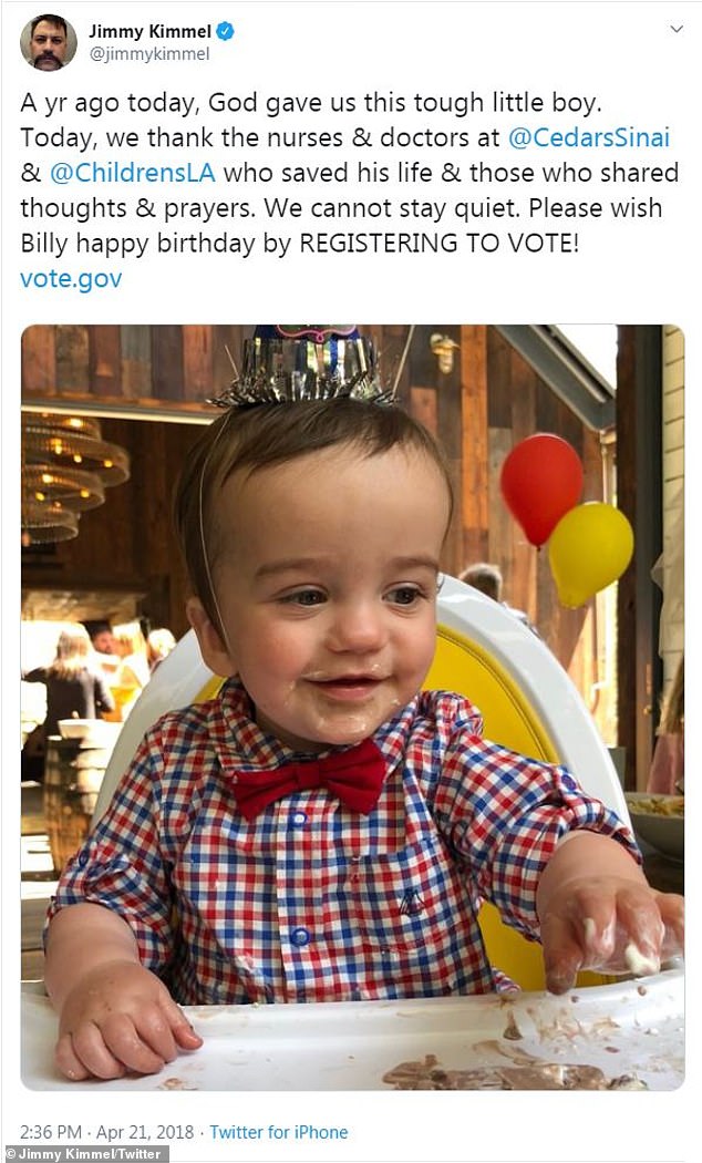 خضع ابن مقدّم البرامج "جيمي كيميل" البالغ من العمر عامين لعملية قلب مفتوح وذلك بعد أيام قليلة من ولادته في إبريل عام 2017، حيث أنه تعافى بشكل كامل بعد نجاح العملية.