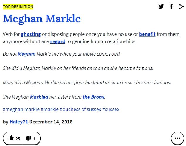 وقد يبدو التعريف قاسيًا ووقحًا بالنسبة لـ"ميغان"، إلّا أن هنالك مبررات لذلك، فقد قطعت اتصالاتها مع عدد كبير من أصدقائها المقربين، وأفراد عائلتها من بينهم والدها "توماس ماركل"، البالغ من العمر 74 عامًا، بالإضافة إلى صديقة طفولتها "نيناكي بريدي"، وصديقتها نجمة تلفزيون الواقع “ميلي ماكينتوش”، التي اعتقد أنها ستكون وصيفتها في حفل الزفاف الملكي، لكن انتهى الأمر بعدم دعوتها من الأساس.