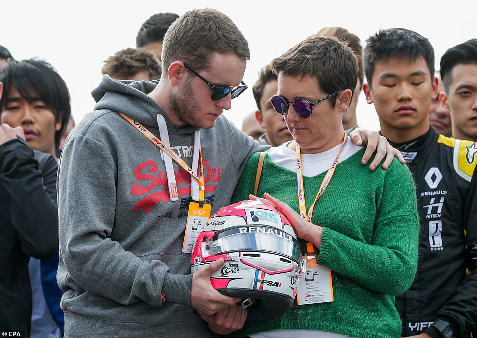 ووقف اللاعبون ووجميع افراد الفرق دقيقة صمت حداداً على روح أنتوين وانضم إليهم والدته ناتالي وشقيقه، كما قام بطل العالم هاميلتون بمعانقتهم وهم يحملون خوذة المتسابق الراحل بينما عانق نجل المتسابق العالمي شوماخر نيك شقيق الراحل.