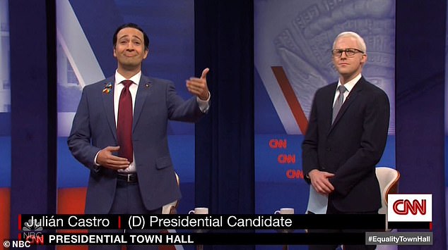 أما كيت ماكينون فوصلت إلى المسرح كإليزابيث وارين التي أخبرت الجمهور أعلم أنني لست مثليه لكن كل المكونات موجودة، بالإضافة إلى لين مانويل ميراندا في صورة جوليان كاسترو الذي اعتذر عن كونه ليس مثلي الجنس لكنه أضاف: "أنا لاتيني والذي يمكننا أن نتفق عليه جميعنا".
