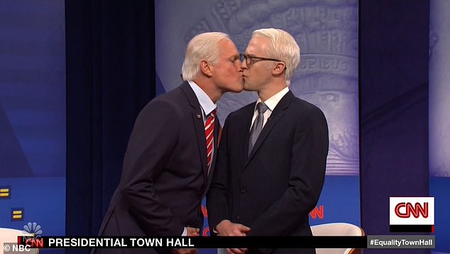 وظهر وودي هارلسون بصورة جو بايدن كمثلي الجنس حيث قام بتقبيل أندرسون كوبر على فمه خلال العرض.