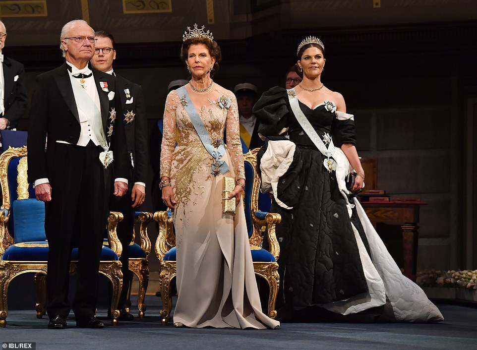 أقيمت مأدبة حفل توزيع جوائز نوبل من مساء يوم أمس الثلاثاء في أستوكهولم في السويد حيث حضرت العائلة المالكة الحدث وأبهروا الحضور بثراء إطلالتهم من الملابس إلى التيجان المزينة بالذهب والألماس.