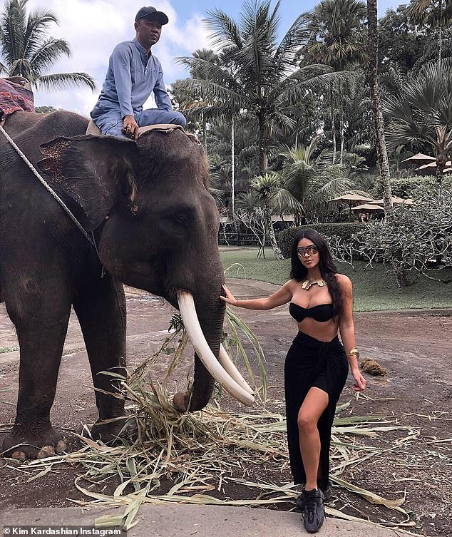 شاركت نجمة التلفزيون الواقع "كيم كارداشيان" سلسلة من الصور خلال عطلتها الأستوائية إلى جزيرة بالي في أواخر شهر أكتوبر الماضي، وأمس الثلاثاء، نشرت كيم صورًا أثناء زيارتها إلى محمية الفيل.