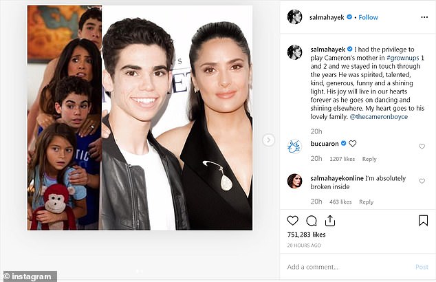 أما النجمة سلمى حايك فقد قالت: "كان لي الشرف أن ألعب دور والدة كاميرون في فيلم Grown Ups، وبقينا على اتصال طوال هذه السنوات، لقد كان مفعماً بالحيوية والموهبة، سيعيش في قلوبنا للنّهاية".