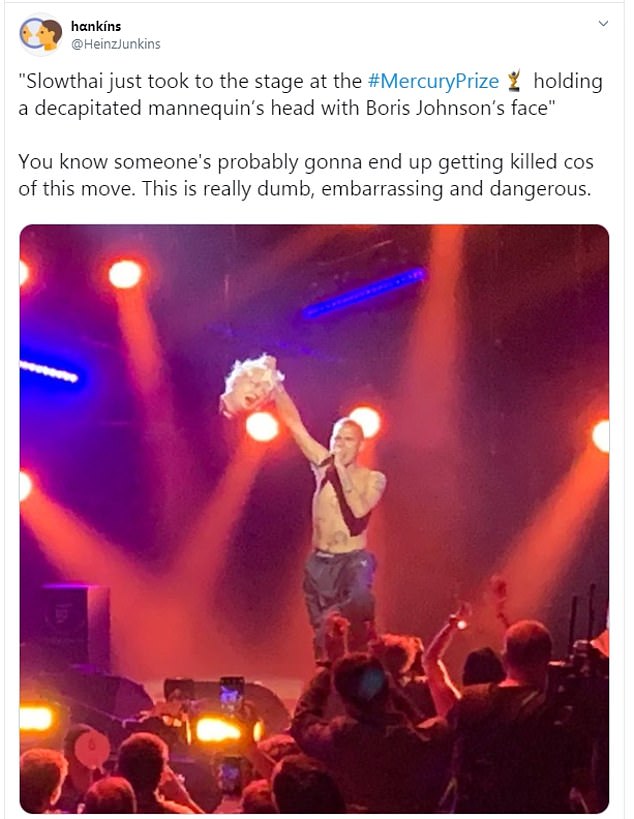 المغني سلوتاي يغضب الجماهير بعد حمله رأس بوريس جونسون في حفل توزيع جوائز ميركوري! (صور)