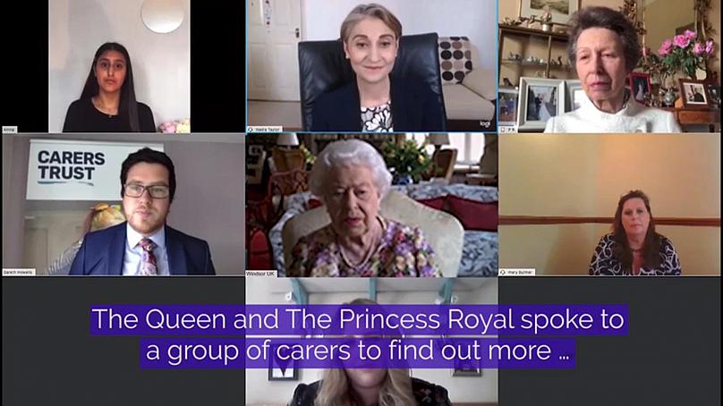 فبسبب فيروس كورونا المستجد استعانت الملكة بخدمة الاتصال بالفيديو من قصر ويندسور للاستماع إلى أربعة معاونين من جمعية «كيررز ترست» وتهنئتهم.