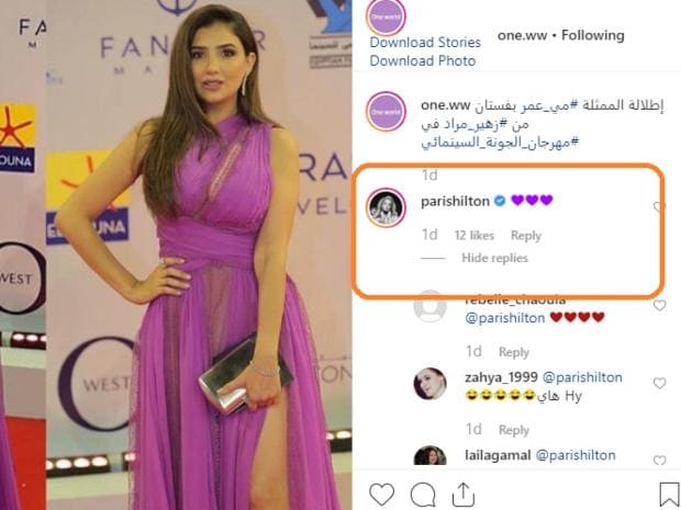 ويجدر الإشارة إلى أن "باريس هيلتون" لا تُتابع "مي عمر" عبر حسابها على موقع "إنستغرام".