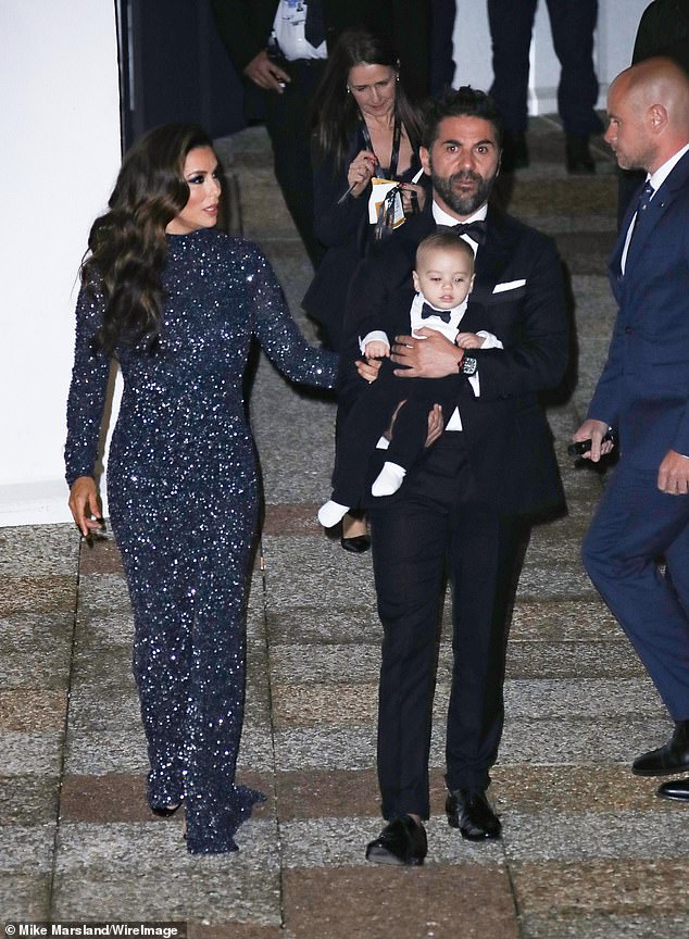 من جهة أخرى، بدا طفلها "سنتياغو"، البالغ من العمر 11 شهرًا، نسخة طبق الأصل عن والده ببدلته السوداء الأنيقة وربطة عنق على شكل ببيونة.