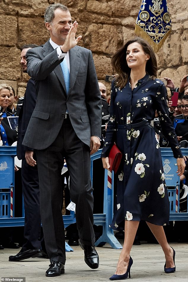 خطفت ملكة إسبانيا "ليتيزيا" الأنظار بإطلالتها الربيعية الأنيقة المُزيَّنة بطبعات ورود صفراء  أثناء توجهها برفقة العائلة المالكية الإسبانية لحضور قداس عيد الفصح في كاتدرائية بالما في العاصمة بالما دي مايوركا.