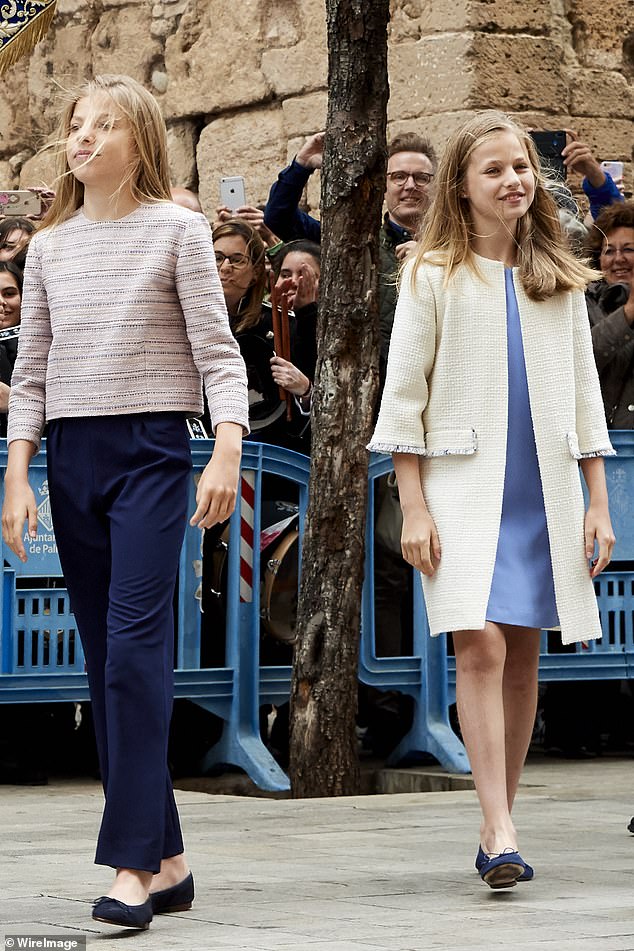 واجتمعت العائلة الملكية في صورة جماعة أمام الكتدرائية، فوقفت الملكة "ليتيزيا" إلى جانب ابنتيها الأميرتين "صوفيا" و"ليونور" التي اتبعتا نهجها فيما يخص الأناقة والبساطة، بالإضافة إلى زوجها الملك "فيليب" وحماتها الملكة السابقة "صوفيا".