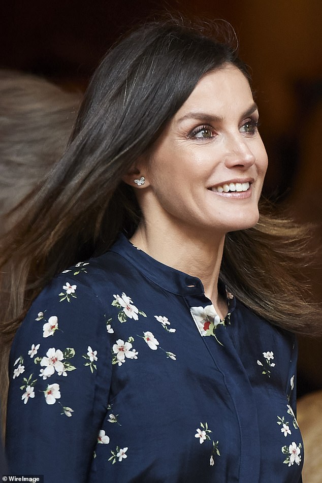 وأكملت "ليتيزيا"، البالغة من العمر 46 عامًا، إطلالتها مُعتمدةُ مكياج ناعم من درجات النود وأسدلت شعرها البني على جانبي كتفها، في حين تزيَّنت بأقراط صغيرة مُرصعة بالألماس على شكل فراشات.