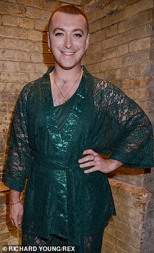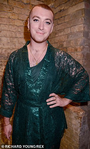 استحوذ "سام سميث" (27 عامًا) على أنظار الجميع بإطلالته الغريبة الأنثوية والتي تختارها النساء قبل النوم عادة، حيث ارتدى طقمًا أخضر من قماش الدانتيل الشفاف على شكل بروتيل زيتي وروب نوم وبنطال عريض، كما تمايل أمام عدسات الكاميرات بنعومة كعارضات الأزياء.
