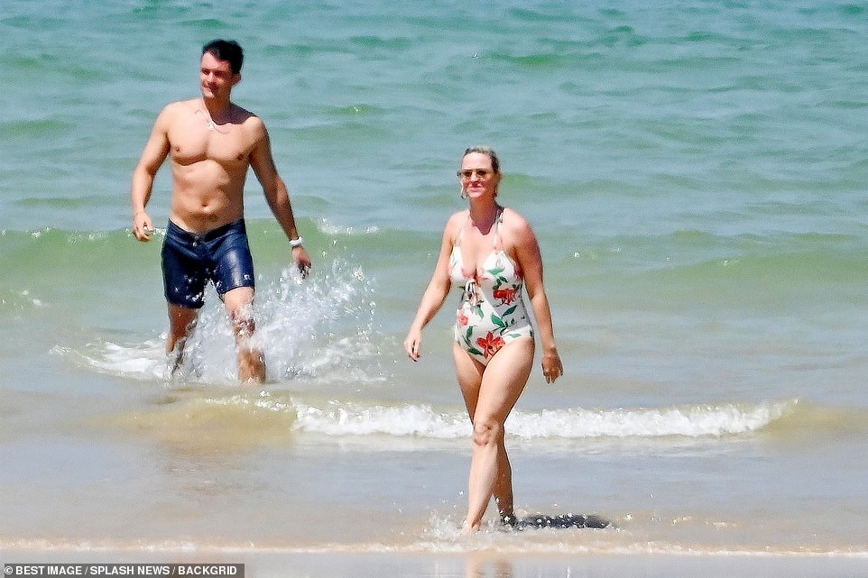 التقطت عدسات الباباراتزي مجموعة صور للنجمين وهما يستمتعان بأشعة الشمس ومياه الشاطئ، حيث استعرضت "كاتي بيري" منحنيات جسدها مُرتديةً مايوه أبيض من قطعة واحدة مُزيَّن بطبعة ورود ملونة من العلامة التجارية " Morgan Lane" بقيمة 214 جنيه استرليني، وسرَّحت شعرها على شكل كعكة مرفوعة، وغطَّت عينيها بنظارات شمسية.