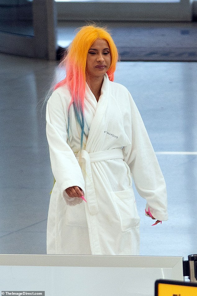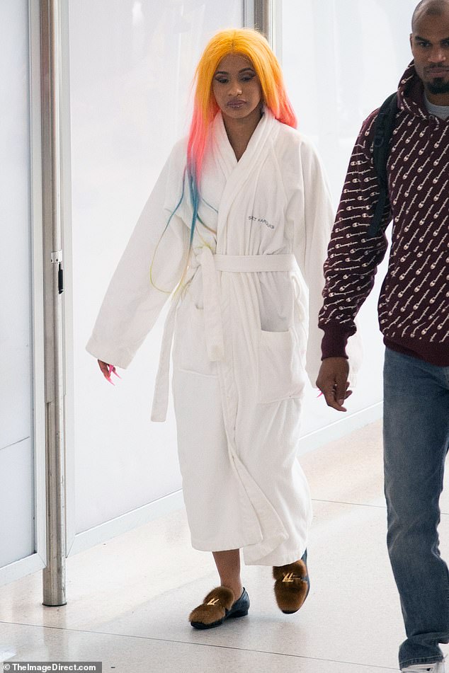 رصدت عدسات الباباراتزي "كاردي بي" بإطلالة مُريحة مُبالغٍ بها أثناء توجهها إلى مطار جون إف كينيدي الدولي صباح السبت، حيث أن ما اختارته يُناسب الخروج من حمامٍ ساخن مُريح، فارتدت روب استحمام أبيض و"شبشب" بُني مُريح من العلامة التجارية العالمية "لويس فيتون" بقيمة 795 جنيه استرليني.
