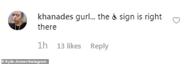لاحظ رواد مواقع التواصل أن صاحبة امبراطورية Kylie Cosmetic قد ركنت سيارتها في موقف خاص لذوي الاحتياجات الخاصة، حيث تظهر اللافتة الزرقاء التي تمنع أي فرد من غير ذوي الاحتياجات ركن سيارتهم في المكان، فكتب أحدهم: "إنها لجريمة أن تركن سيارتك في مكان مخصص لذوي الاحتياجات الخاصة."