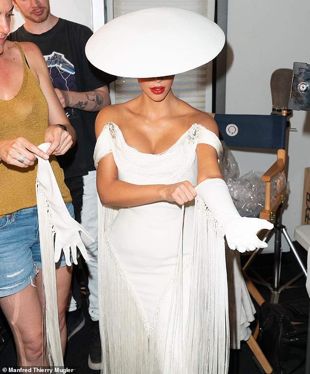 وبعيدًا وبالأسود، ظهرت كيم بفستان وقبعة باللون الأبيض، في إطلالة تبدو وكأنها من حقبة زمنية أخرى.