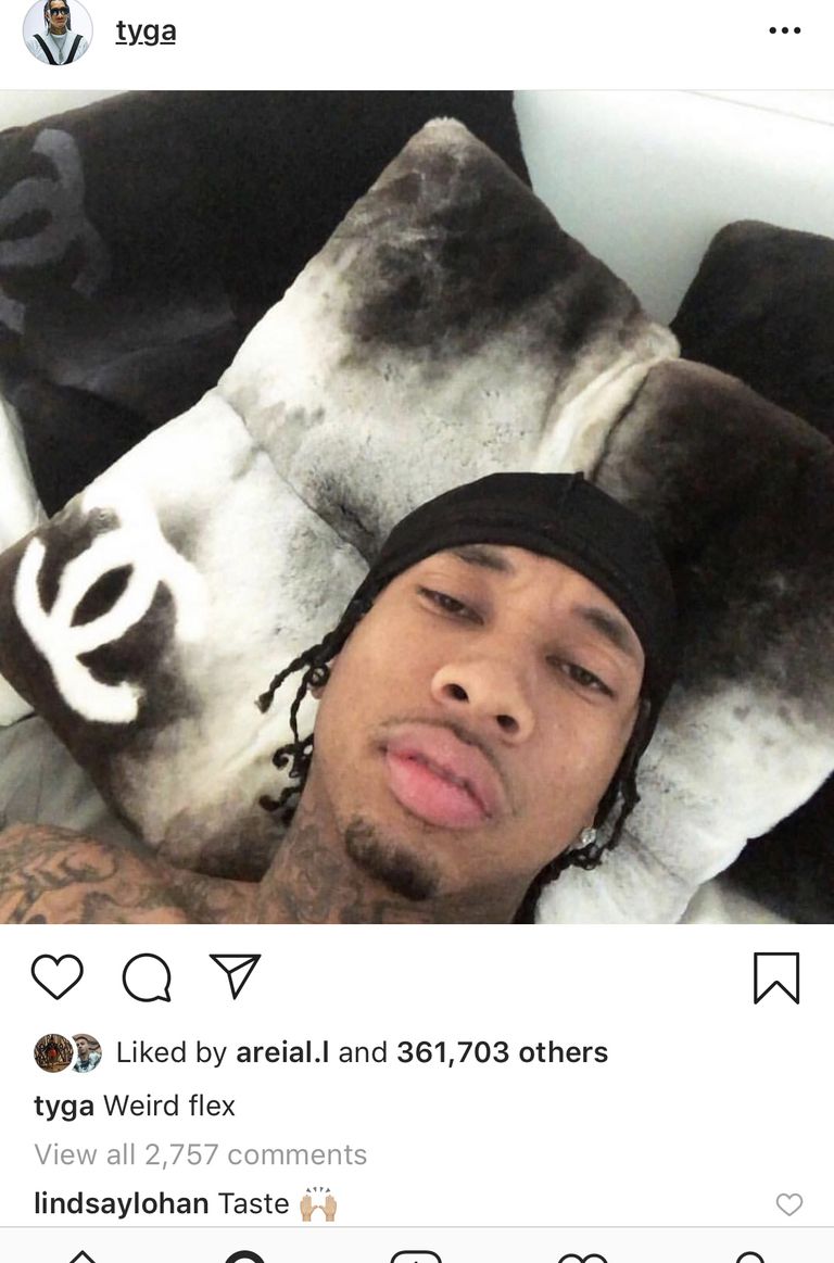 ولا تعد هذه المرة الأولى التي تبدي فيها "لوهان" إعجابها بالمغني الشاب، ففي وقت سابق، شارك "تيجا" متابعيه الذين يبلغ عددهم 13.7 مليون عبر موقع ""إنستغرام" صورة له مُستلقيًا على السرير، ومن بين المعلقين والذين أبدوا إعجابهم بصورته " لوهان"، حيث علَّقت على صورته بكلمة "Taste" أي "مذاق" مُرفقةً إياها بإيموجي على شكل يدين مرفوعتين عاليًا، وتساءل المعجبون حول ما تُلمِّح إليه النجمة، فهل هي إشارة إلى أغنيته التي تحمل عنوان "Taste" أم أنها توَّد جذب اهتمامه؟!
