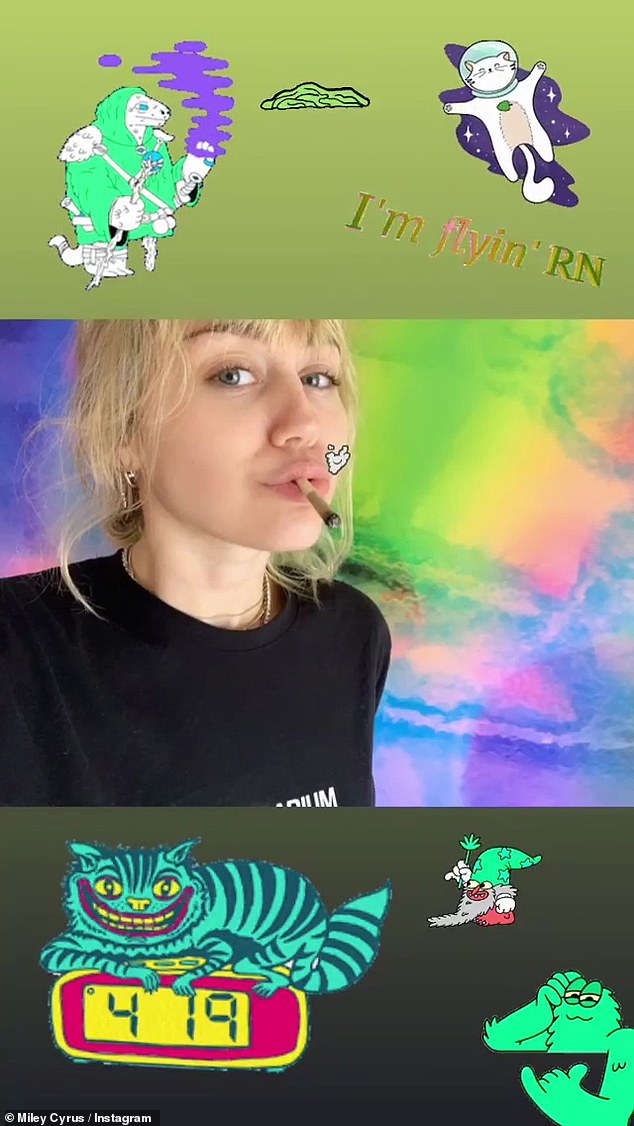 واحتفلت مايلي باليوم الكبير من خلال نشر سلسلة من الصور عبر حسابها الخاص على "إنستغرام"، حيث ظهرت في صورة وهي تشعل سيجارة كبيرة وعلّقت بتاريخ المُناسبة "20/4"، أما في صورة أخرى فكانت تدخن واحدة أخرى أصغر حجماً.