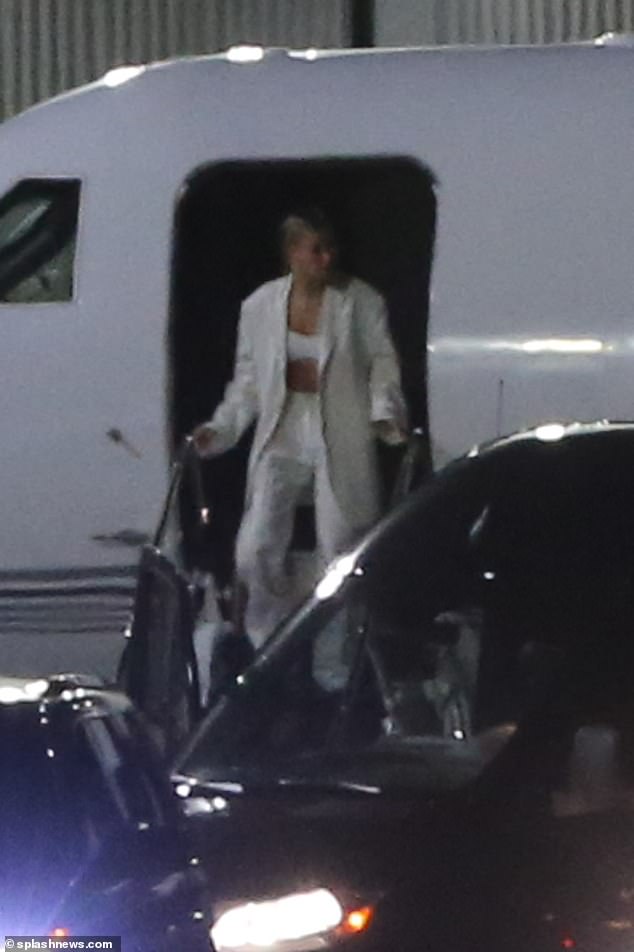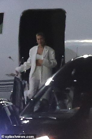 وشوهدت "بالدوين" (22 عامًا) تهبط على درجات السلالم مُرتديةً إطلالة بيضاء مؤلفة من كروب توب وبنطال عريض ذي خصر عالٍ، وسترة بيضاء عريضة وطويلة. من جهة أخرى، ارتدى "بيبر" كنزة بيضاء بسيطة وشورت أسود.