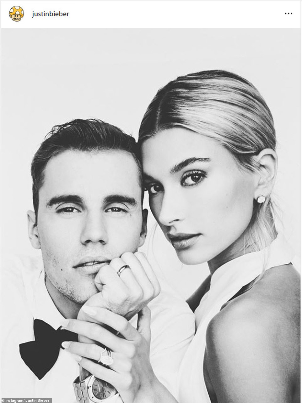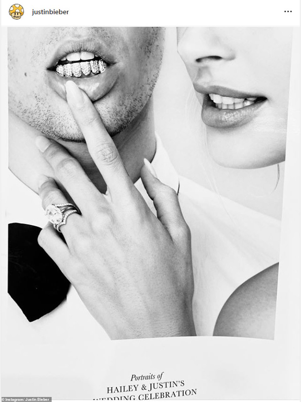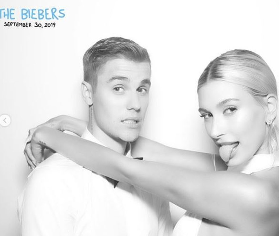 وقد أشعلت صور زفاف الثنائي مواقع التواصل الاجتماعي، فنشر "بيبر" صورتين للحفل بالأبيض والأسود عبر حسابه على موقع "إنستغرام"، وعلَّق: "هي عروسي".