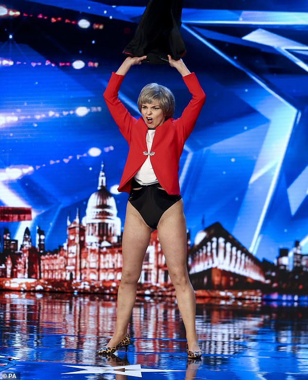 فاجأت مدربة اليوغا "كاث تومسون"، البالغة من العمر 56 عامًا، الحشود ولجنة التحكيم حينما وقفت على خشبة المسرح وكأنها نسخ طبق الأصل عن "تيريزا ماي" بسترتها الحمراء، وتسريحة شعرها القصيرة، ونظراتها وحركاتها، لكن العرض لم يكن ينطوي على تقليد رئيسة الورزاء السابقة في الكل فحسب!