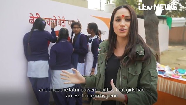 وفي الفيديو ، توجِّه "ميغان" حديثها للكاميرا، قائلةً: "ما وجدناه في هذه المدرسة أن عدد تسجيلات الفتيات ارتفع إلى ثلاثة أضعاف بمجرد بناء المراحيض، كي تتمكن الفتيات من الوصول إلى مرافق النظافة والحمامات أثناء تواجدهن في المدرسة."
