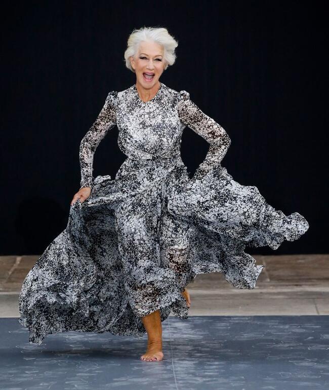 كانت النجمة البريطانية مفاجأة العرض، فأبهرت الجميع وبعثت السعادة في قلوب الحضور بإطلالتها الربيعية مُرتديةً فستان باللونين الأبيض والأسود تزينه الأزهار، وظهرت حافية القدم لتقتحم منصة العرض جرياً، واعتمدت تسريحة شعر فوضوية.