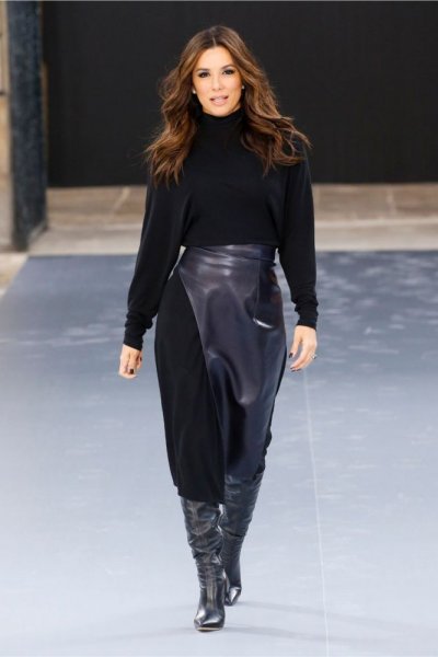 تألَّقت النجمة الأمريكية مُرتديةً كنزة سوداء بأكمام طويلة وياقة عالية نسَّقتها بتنورة ضيقة من الجلد، واعتمدت مكياج عيون سموكي مُبرزًا سحر عينيها، وطبَّقت أحمر شفاه من النود، كما أسدلت خصلات شعرها البني المموج على جانبي كتفها بانسيابية.