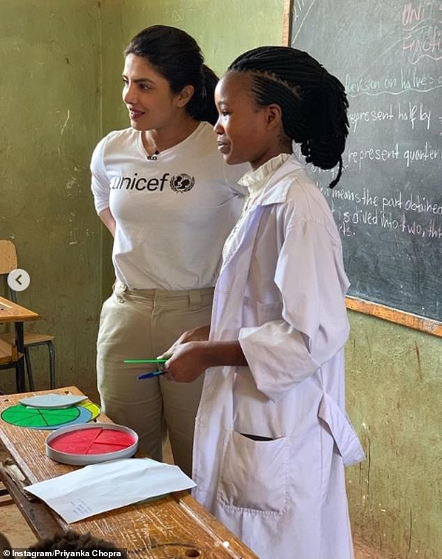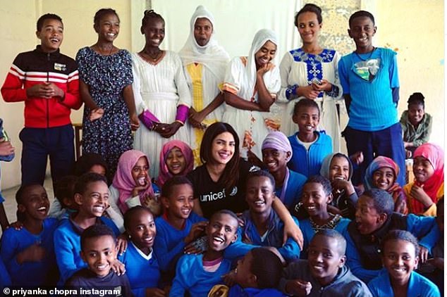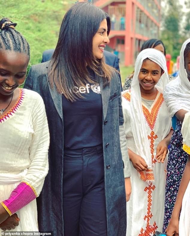 توجهّت النجمة "بريانكا شوبرا" إلى أثيوبيا خلال عملها كسفيرة للنوايا الحسنة التابعة لليونيسف، لدعم برنامج يساعد الفتيات والفتيان، حيث قابلت أطفال مدرسة بامباسي للاجئين الإبتدائية.