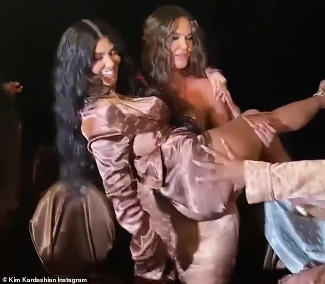 وشاركت نجمة الواقع البالغة من العمر 40 مجموعة من مقاطع الفيديو عبر حسابها الخاص على "انستغرام"، التي تُظهر كيم برفقة شقيقاتها وهن يرتدين ملابس نوم داخلية من الساتان.