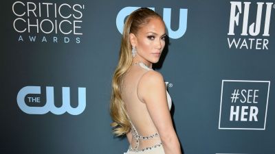 وأكملت "لوبيز" إطلالتها بحمل كلاتش فضي مُرصَّع بالكريستال البرَّاق، وانتعلت حذاء ذي كعب عالٍ من تالعلامة التجارية "Casadei Blade" واعتمدت مكياج برونزي وظلال عيون دخاني وتسريحة شعر مُنسدلة إلى الخلف.
