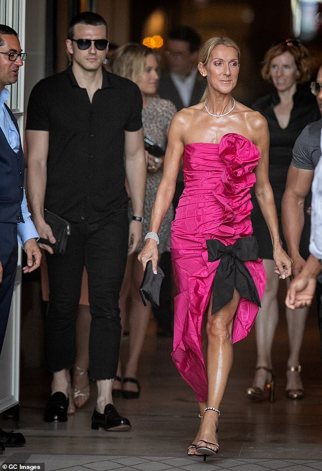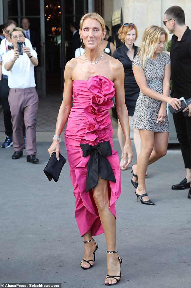 وتألَّقت "سيلين"، البالغة من العمر 51 عامًا، مُرتديةً فستان فوشي سترابلس زُيِّنَ بطيات امتدت من الصدر، وما زاده إثارة الفتحة الجانبية التي تصل الركل والمُزيَّنة ببيونة سوداء كبيرة.