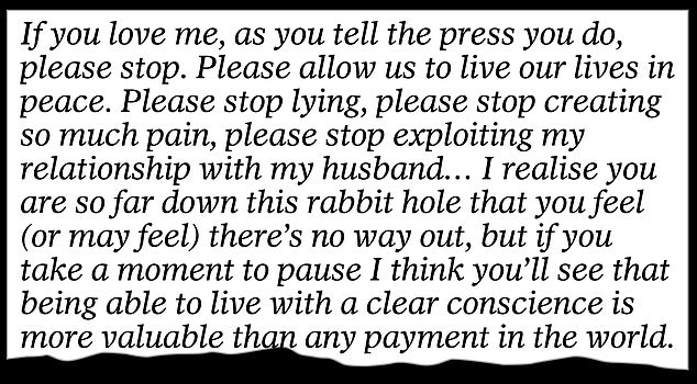 وكانت الصديقات قد زعمن أنه أرسل لها رسالة طويلة يطالبها بجلسة تصوير تجمعهما، لتُجيب "ميغان" بحالة من الذهول: "هذا عكس ما قلته، فلقد أخبرتك أني لا أوَّد التواصل معك عبر وسائل الإعلام، وأنت تطالبني بعكس ذلك، هل سمعت أي شيء قلته؟".