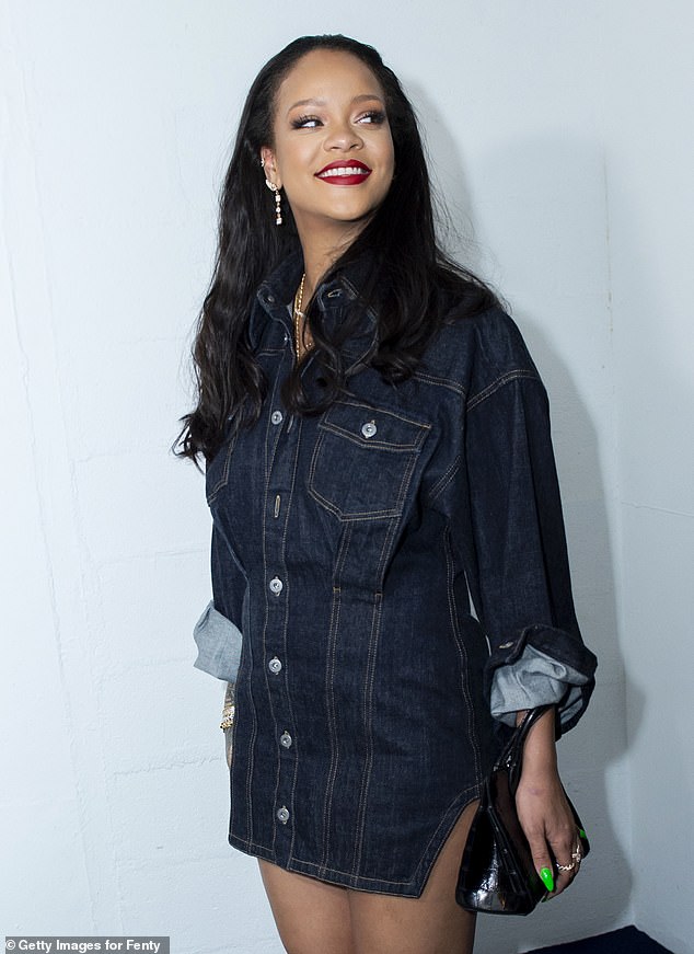 فمن خلال ما نشرته صحيفة "ديلي ميل" البريطانية من صور، يمكن رؤية كيف بدت ريهانا في غاية الجاذبية بفستان جينز قصير يبدو أنّ تصميمه مستوحى من الجاكيت أو القميص الجينز، ولكن على هيئة فستان.