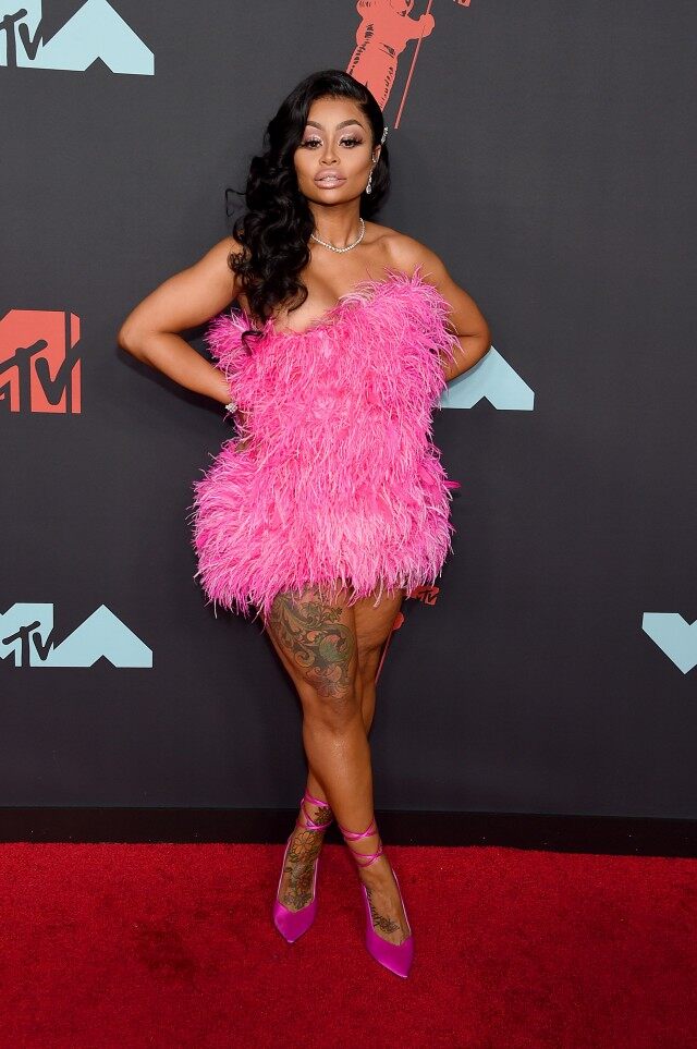 أطلَّت "بلاك شاينا"، خطيبة "روب كارداشيان" السابقة،على السجادة الحمراء مُرتديةً فستان فوشي قصير سترابلس مُزيَّن بالريش من توقيع العلامة التجارية الإيطالية " Attico"، حيث كشف عن وشومها المُتعددة التي ملأت ساقيها.