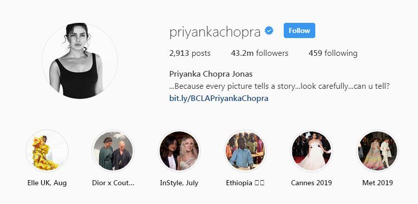 تعد بريانكا هي الشخصية الهندية الأكثر متابعة على إنستغرام، حيث يتابعها حاليًا 43 مليون شخصًا.