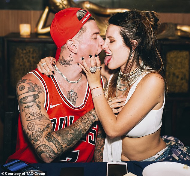 احتفلت "بيلا ثورن" (21 عامًا) وحبيبها بإطلاق أغنيته الجديدة Dove E Quando في مطعم "تاو" الآسيوي بمدينة لوس أنجلوس يوم الجمعة الماضية، والتقطت لهما صور حميمية تجمعهما من بينها صورة يتبادلان فيها القبل بشكل مقرف أمام الحشود المتواجدة دون أدنى خجل.