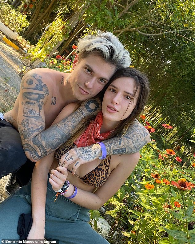 وظهرت بيلا برفقة حبيبها الجديد بينيامين ماسكولو على شاطىء البحر وهي ترتدي بكيني رفيع بنقشة الفهد في ثلاث صور مختلفة وهي تسرّح شعرها بطريقة مختلفة، وعلّقت على الصورة: "إدراج قبعة سانتا هنا..".