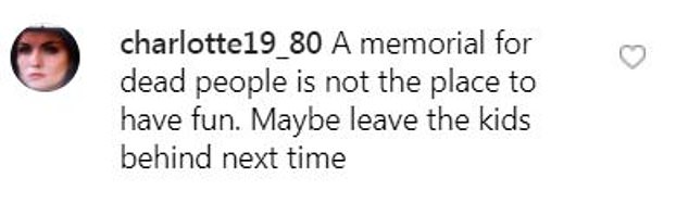 ودفع هذا الأمر المتابعين إلى انتقاد بينك حول سلوكها، في جعل أطفالها يلعبون عند النصب التذكاري، فقال أحدهم: "عزيزتي بينك، هذا المكان ليس بالتأكيد مكاناً للاختباء والركض"، كما كتب آخر: "هذا نصب تذكاري، وليس ملعباً".