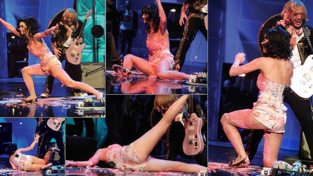 تتميز كاتي بيري بتفانيها في أعمالها وحفلاتها، فضلًا عن حماستها الشديدة أيضًا، فأثناء تقديم عرض لها خلال حفل "إم تي في"، تعثرت كاتي على المسرح وسقطت على كعكة ضخمة.
