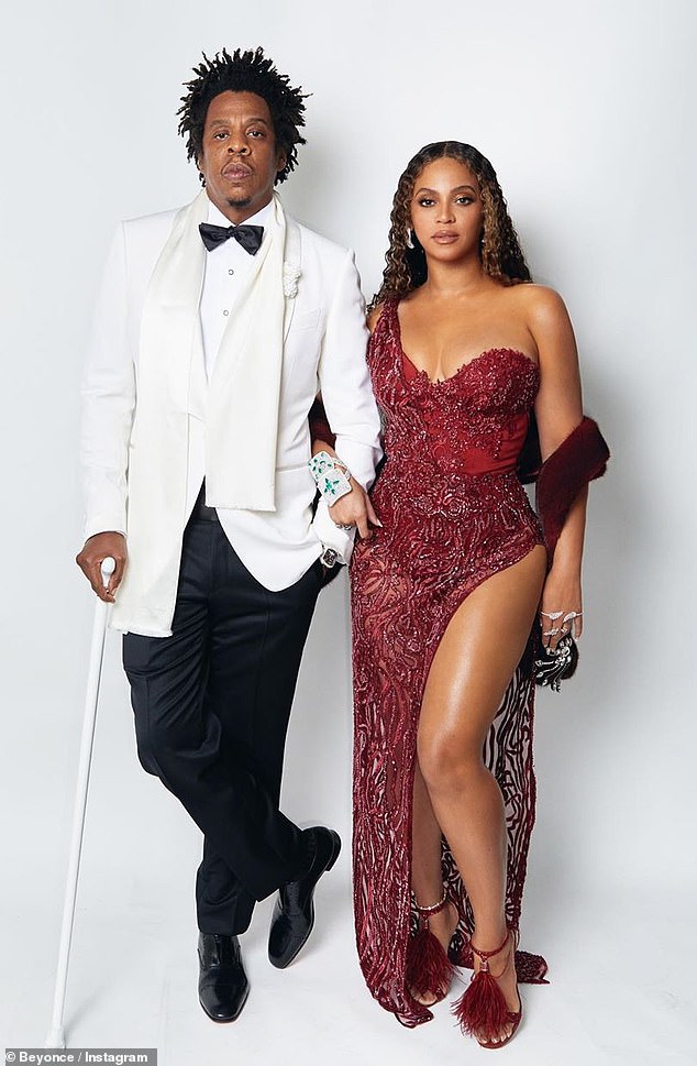 من جهة أخرى، اختار "جي زي" بدلة كلاسيكية بيضاء نسَّقها ببنطال أسود وربطو عنق سوداء على شكل ببيونة.