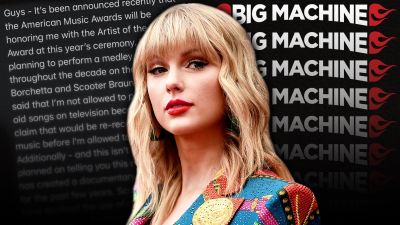 ويعزى أسباب التهديد إلى أن الشركة تورطت في خلاف مرير مع النجمة تايلور سويفت التي ادّعت بأن Big Machine منعتها من أداء أغانيها القديمة كما وضعت أدائها في حفل جوائز الموسيقى الأمريكية في محل شك لأن براون وبورشيتا لم يسمحا باستخدام أغانيها القديمة.